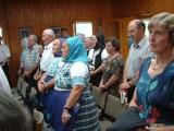 Me ser Karin saman med kvinnene og me ser eit utsnitt frå den store forsamlinga som var med i kyrkja deira denne dagen