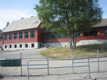 Den eldste skule er frå 1937/38 - midt på biletet. Så fekk me utbygging i 1980 - her ser me hovudinngangen. I tillegg har me eit utbygging i 1997 og til sluitt ei i 1999.